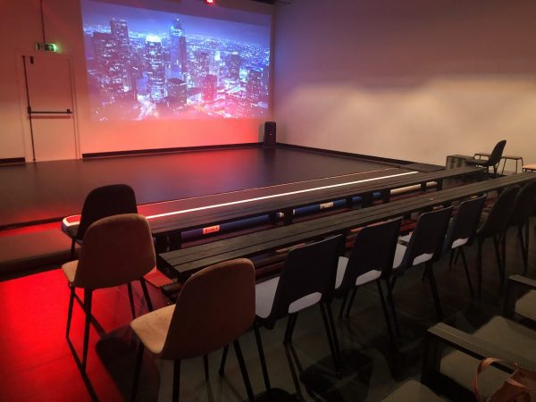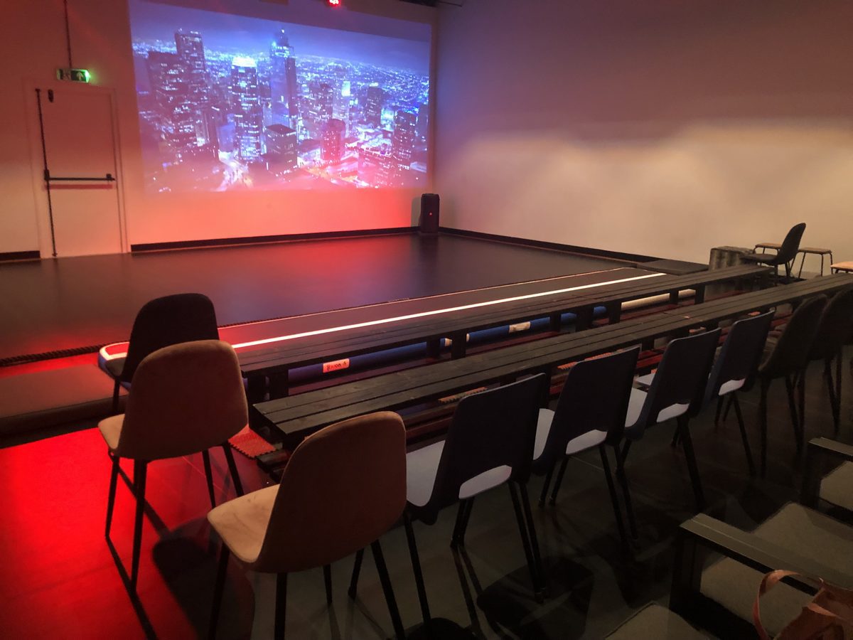 De danszaal biedt een mooie ruimte met een goede geluidsinstallatie, beamer, mooie verlichting en airco. En vooral niet onbelangrijk, het is voorzien van een echte dansvloer met vloerverwarming en goede demping om blessures te willen voorkomen.